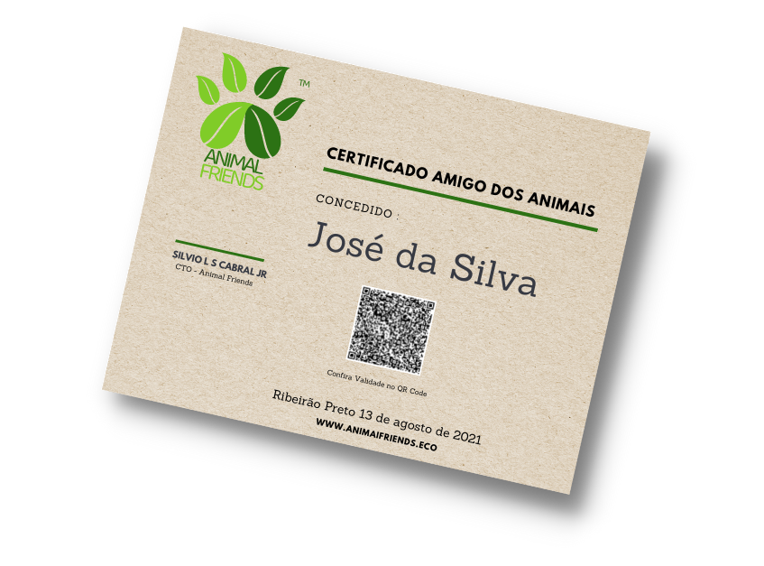 Nosso certificado e selo só serão concedidos a pessoas ou empresas que estiverem livres de quaisquer denúncias de maus-tratos, devolução de animais, comportamentais e crimes ambientais.